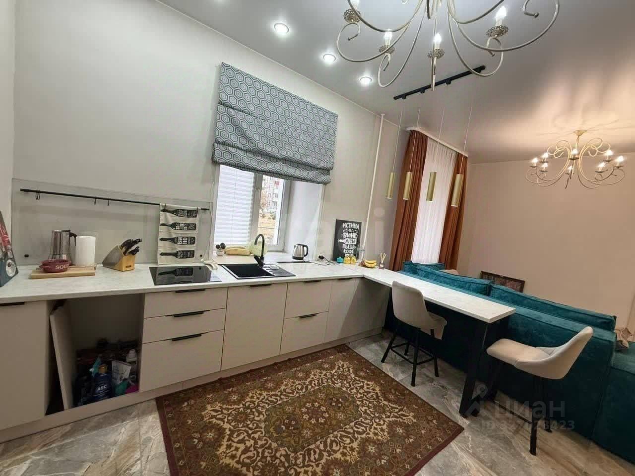 В квартире выполнен свежий косметический ремонт: - натяжные потолки с точечными светильниками, - пластиковые стеклопакеты, - в комнате всегда светло и тепло, - в кухне: хороший гарнитур выполненный на заказ, стена отделана керамической плиткой, есть ниша под подоконником. - санузел совмещённый, установлена новая сантехника, чугунная ванна.