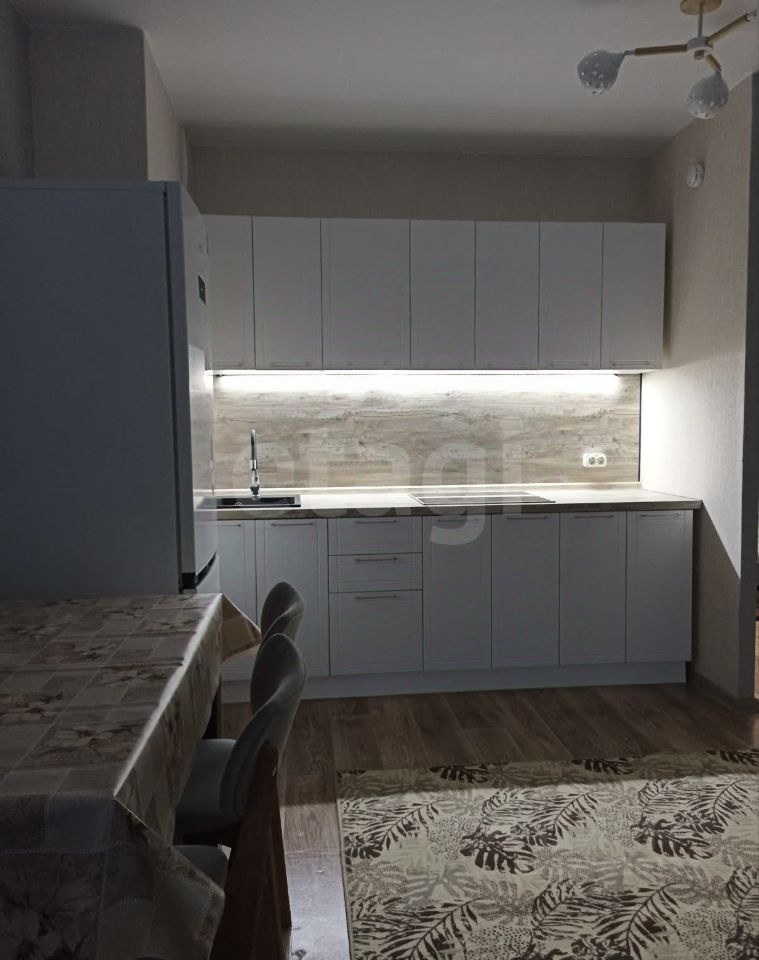 В квартире имеется вся необходимая техника и мебель: кухонный гарнитур, кухонный стол, стулья, электрическая плита, холодильник, диван, телевизор, шкаф купе с зеркалом, комод, стиральная машинка