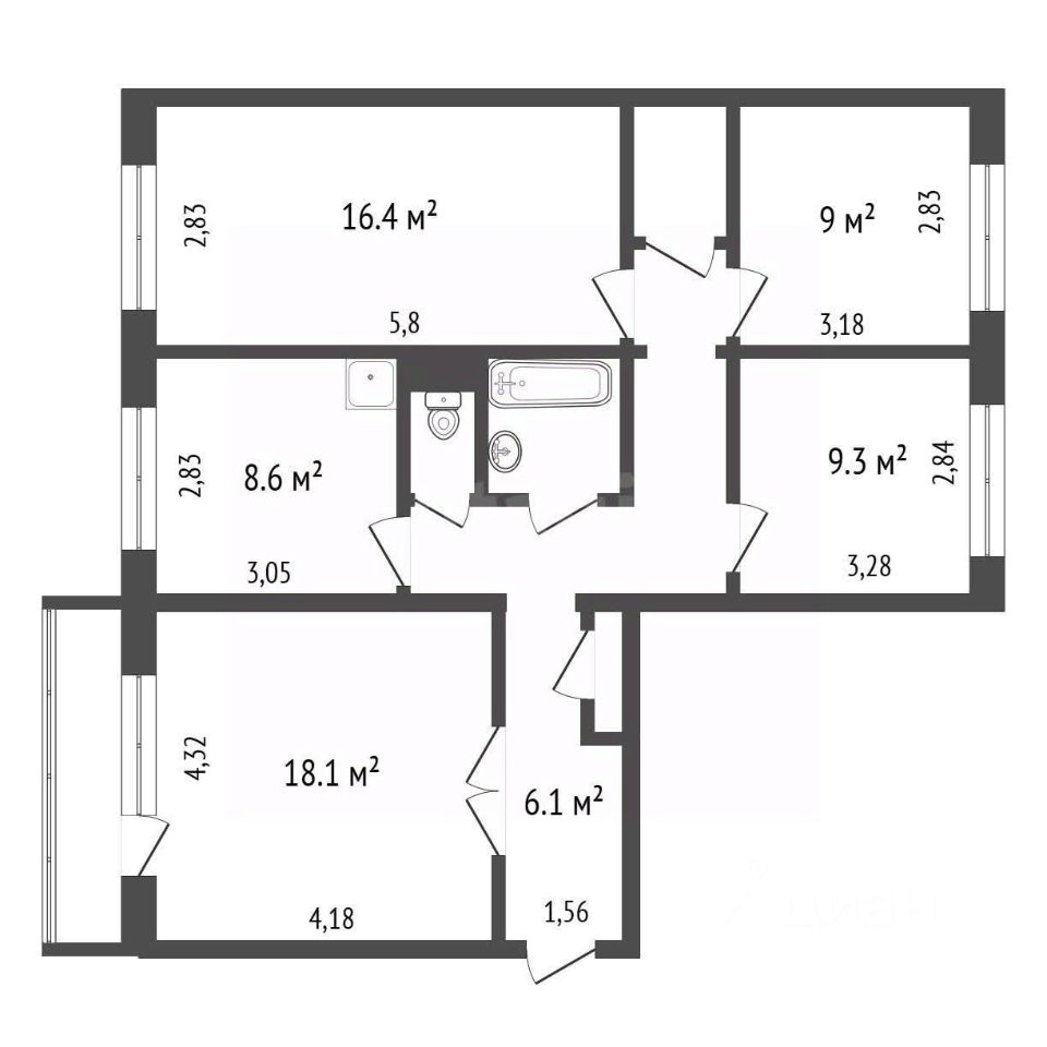 Продам 4- х комнатную квартиру, для большой, дружной семьи, где каждый сможет найти уголок по душе. Окна на две стороны. Все комнаты изолированные. Просторный зал, 18 кв.м., с выходом на балкон и видом на Енисей. Свежие обои в пастельных тонах, на полу линолеум, балкон остекленение пластик. Санузел раздельный в кафеле.