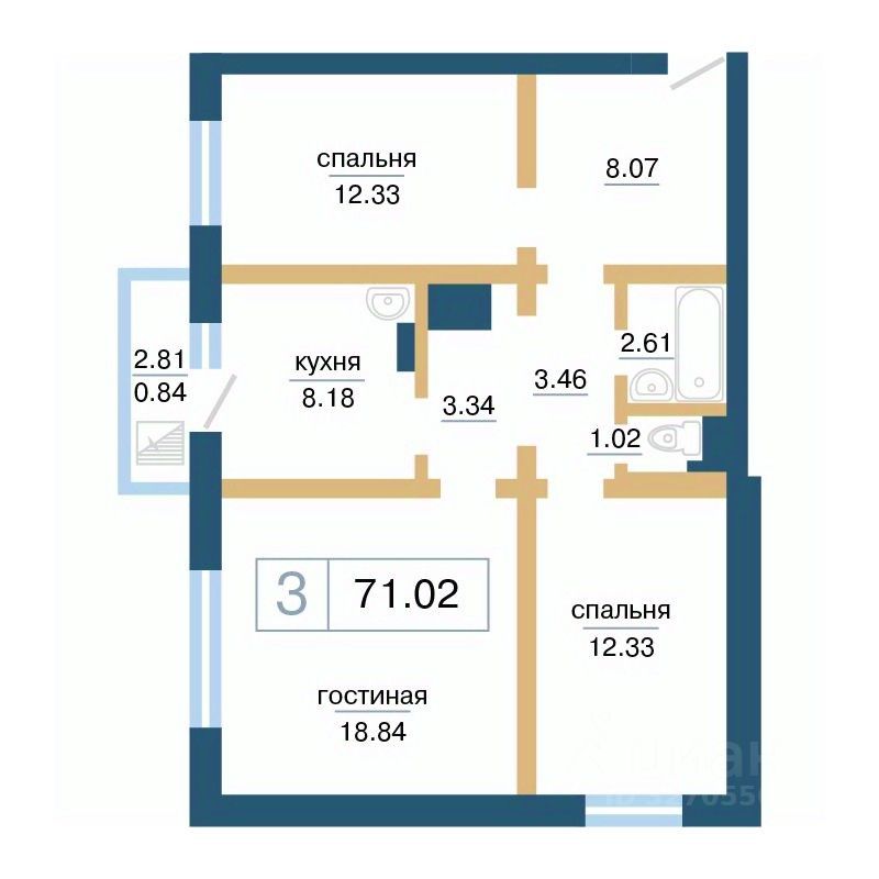 Продаётся 3-комнатная квартира в строящемся доме (Дом 13А), срок сдачи: II-кв. 2026, общей площадью 71.02 кв.м., на 6 этаже. Расположение, транспортная доступность Жилой комплекс ''Нанжуль-Солнечный'' - это квартал, в состав которого входит четырнадцать панельных зданий бюджетного класса высотой от 16 до 26 этажей, а также множество инфраструктурных объектов. Новостройка находится на северо-восточной окраине города, в Советском районе, на территории микрорайона Солнечный, рядом с Молодежным проспектом, улицами Соколовская, Ерофеевская, проспектом 60-летия образования СССР и Енисейским трактом. Путь от ''Нанжуль-Солнечного'' до центральной части города займет около получаса. За пять минут от комплекса можно доехать до железнодорожной станции Красноярск-Северный. Инфраструктура Собственная инфраструктура ''Нанжуль-Солнечного'' включает в себя: ФОК, взрослую и детскую поликлиники, женскую консультацию, несколько детских садов, общеобразовательную школу, а также офисы, магазины, сервисные и оздоровительные учреждения на нижних этажах и во встроенно-пристроенных помещениях. Рядом с кварталом находятся: детские сады 112, 328, 326, частный детский сад ''Сорванцы'', аква-клуб ''Утята'', детская больница 8, детская поликлиника 1, городская больница 2, родильный дом 1, почта, филиал Сбербанка, школы 144, 139, 134, рынок ''Простоквашино'', супермаркет ''Командор'', магазины ''Солнечный'', ''Березовский'', ''Ярмарка'', пансионат ''Солнечный''. За пять минут от ''Нанжуль-Солнечного'' можно доехать до инфраструктуры, расположенной около железнодорожной станции Красноярск-Северный, в микрорайоне Метростроитель: торговые центры, гипермаркеты, гастроном ''Красный Яр'', супермаркет ''Командор'', спорткомплекс ''Красноярск''. В пятнадцати минутах езды от комплекса находится микрорайон ''Взлетка'', в котором работают: крупнейшие торгово-развлекательные центры Красноярска ''Планета'' и ''Июнь'', торговые центры ''Взлетка Плаза'', Dommer, торговый комплекс ''Авиатор'', торгово-офисный комплекс ''Арбат'', гипермаркеты ''Лента'', ''Декатлон'', ''Леруа Мерлен'', международный выставочно-деловой центр ''Сибирь'', бизнес-центры ''Весна'', ''Сирус'', 30-этажный деловой центр ''Первая башня'', Институт психолого-педагогического образования, рынок ''Новая взлетка'', Енисейский рынок, ледовый дворец ''Кристалл''. Экологическая обстановка в месте расположения квартала хорошая. Комплекс находится на окраине города, поблизости от пригородных зон, лесов и озер, вдали от промышленных предприятий, на некотором расстоянии от крупных автотрасс. Надежность застройщика Жилой комплекс ''Нанжуль-Солнечный'' - это масштабный проект созданной в 1989 году красноярской компании ''Сибиряк''. Это одна из самых крупных строительных компаний Красноярска, на счету которой десятки реализованных проектов. Компания ''Сибиряк'' строит не только жилые дома, но и детские сады, больницы и спортивные объекты (в частности, она построила несколько объектов для Всемирной зимней Универсиады 2019 года). Помимо ''Нанжуль-Солнечного'' на счету компании