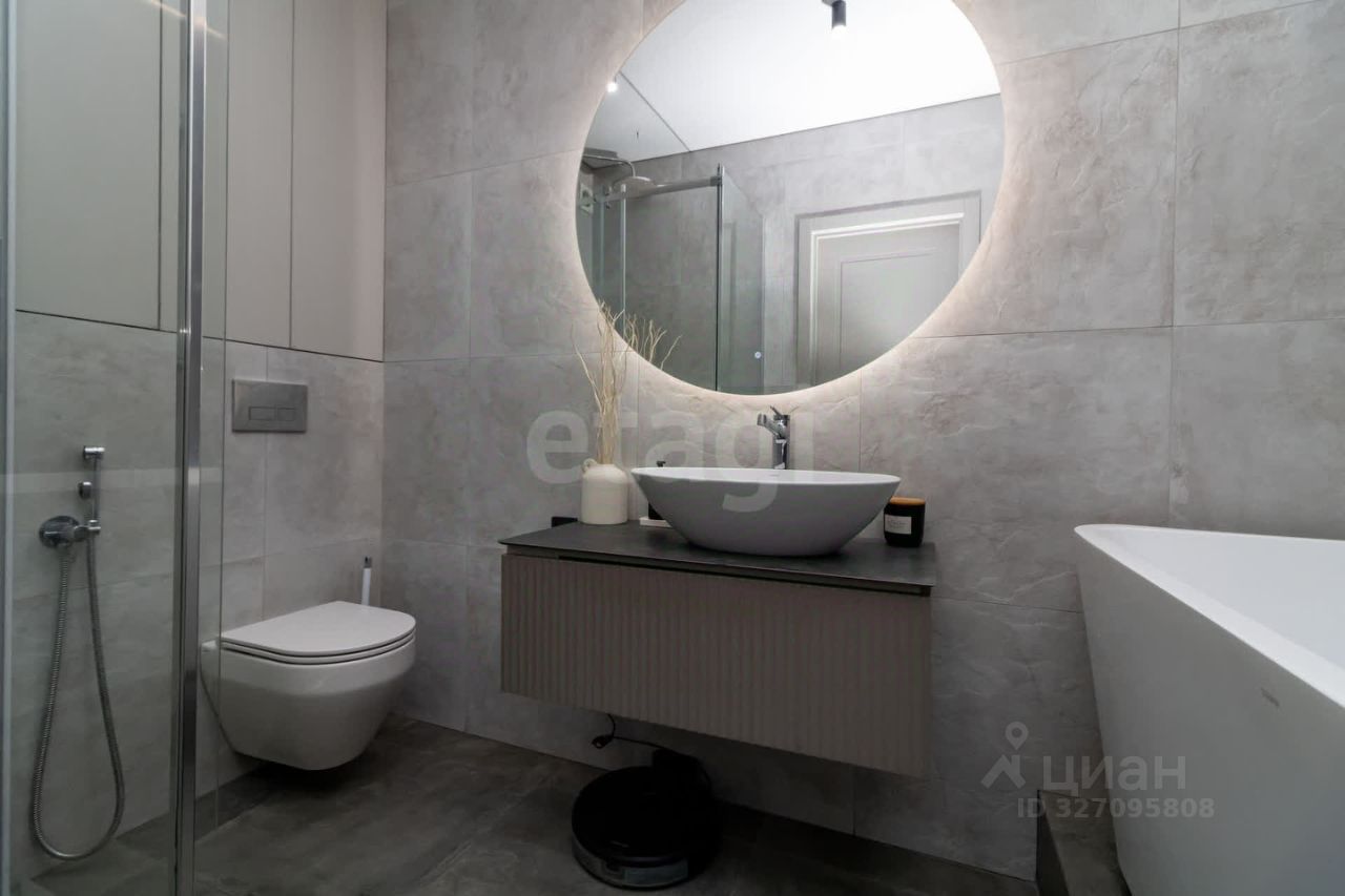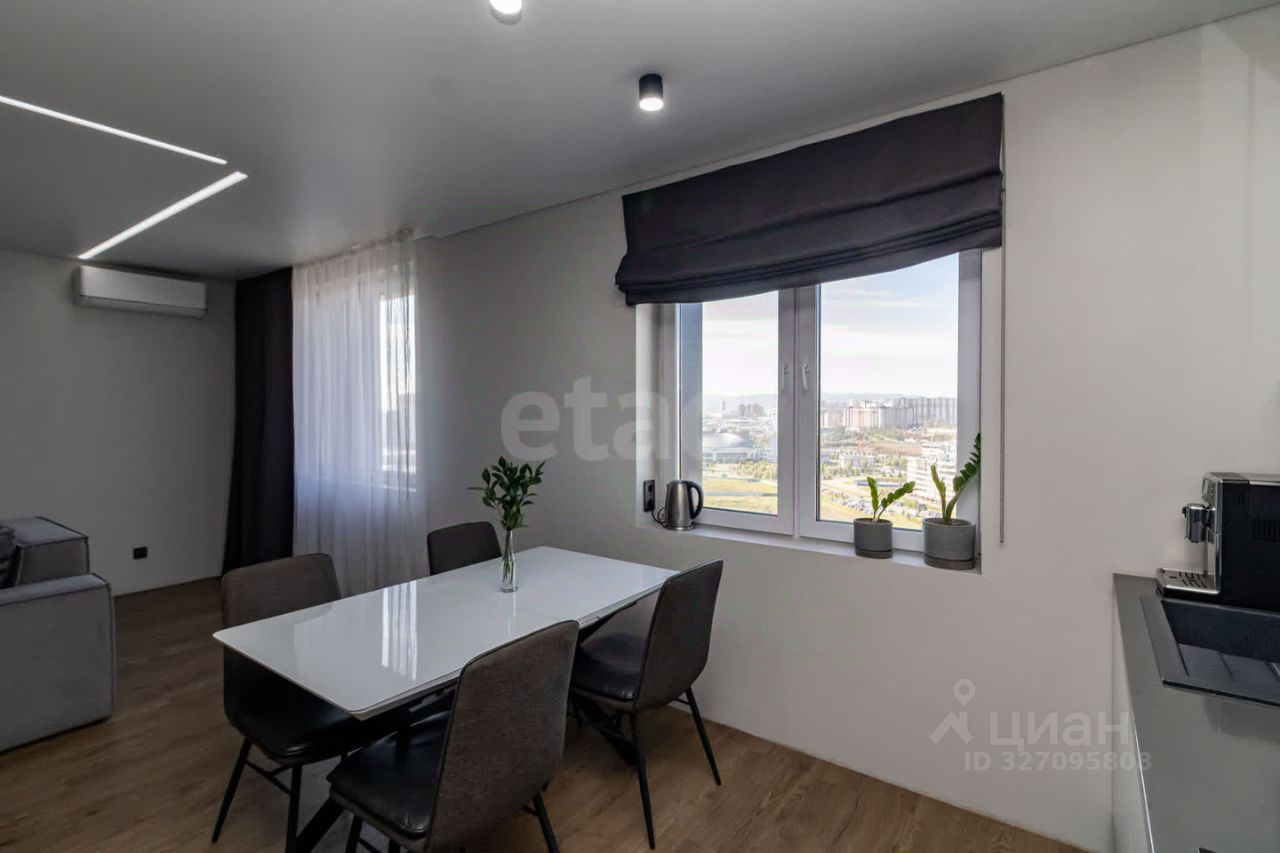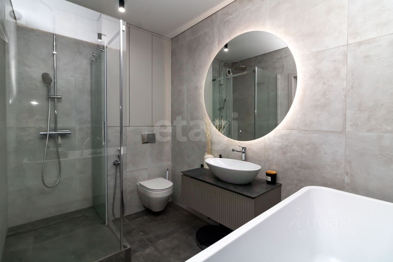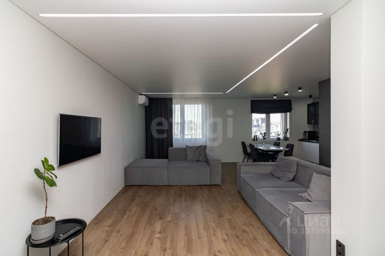 Дизайнерский ремонт, тёплые полы, две лоджии, гардеробная, два санузла. Панорамные окна на обе стороны. * кухня-гостинная: просторная, с двумя диванами, один из которых раскладывается, получаются доп.спальные места. Вся техника встроенная, стол раскладывается. * санузел: Два санузла: теплые полы, один санузел можно использовать как постирочную, хоз.комнату, а второй для принятия ванны, спа-процедур, либо для контрастного душа в душевой кабине. В обоих санузлах имеется гигиенический душ, подвесные унитазы, зеркала с подсветкой, теплые полы.