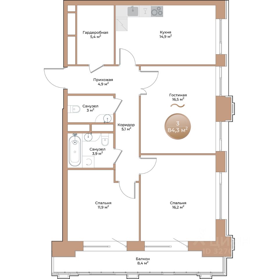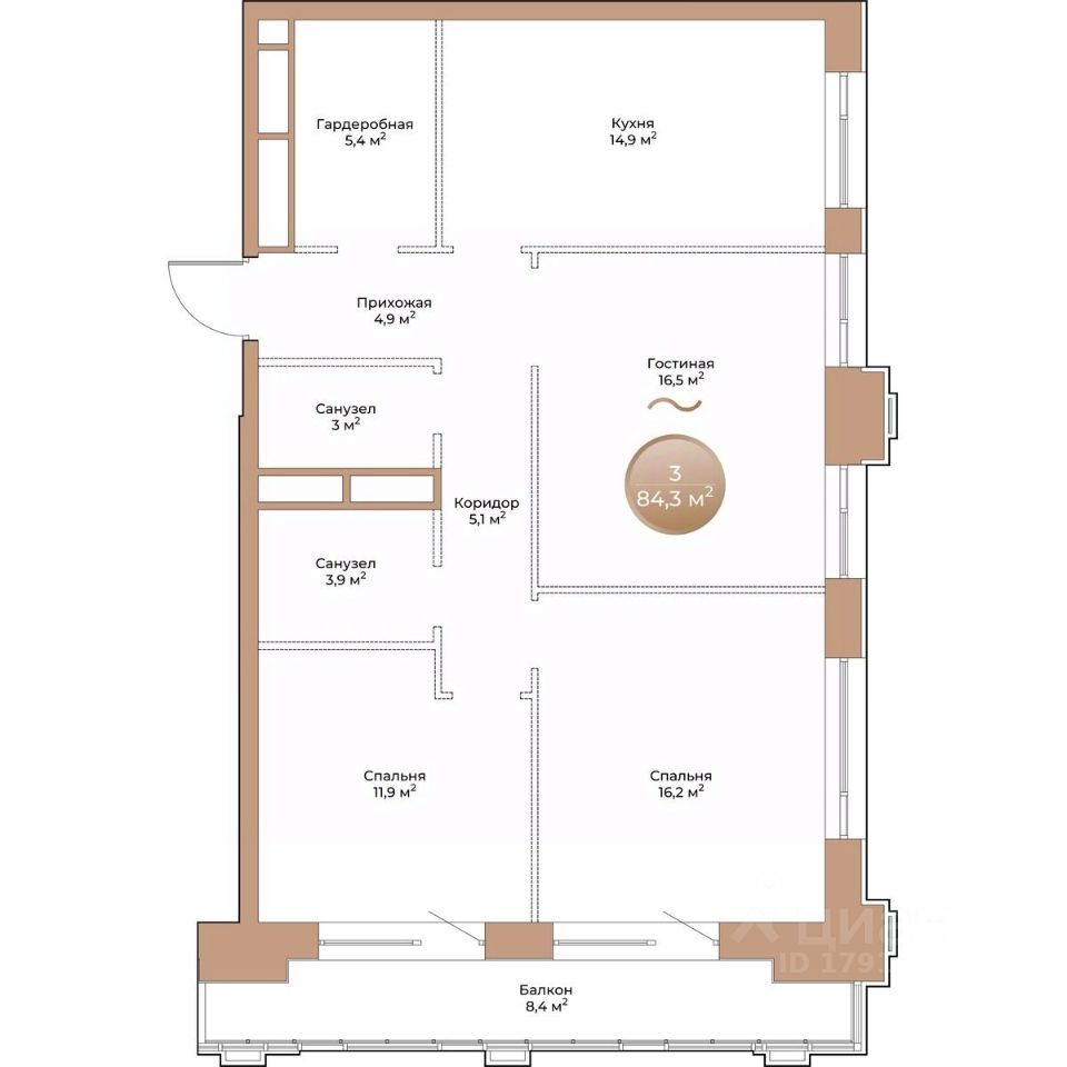 продам 3-к, Партизана Железняка, 35а/115 932 700 ₽