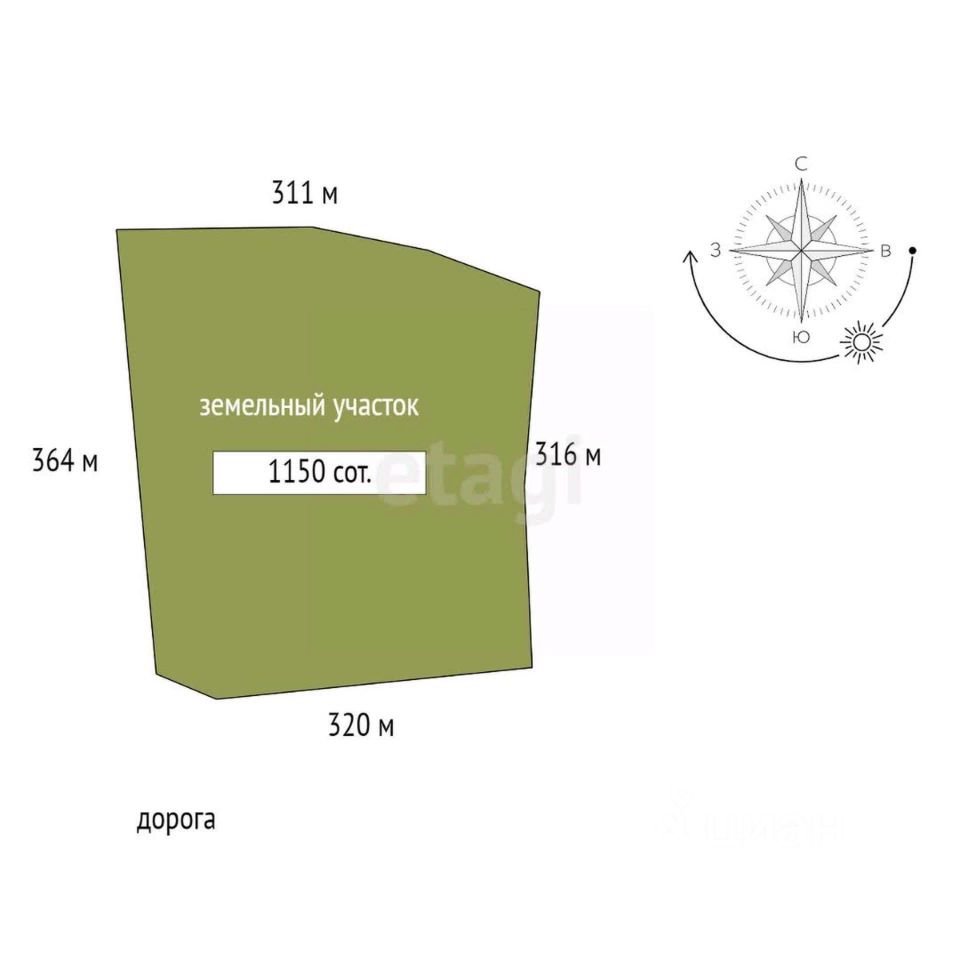 Площадь участка1150 соток