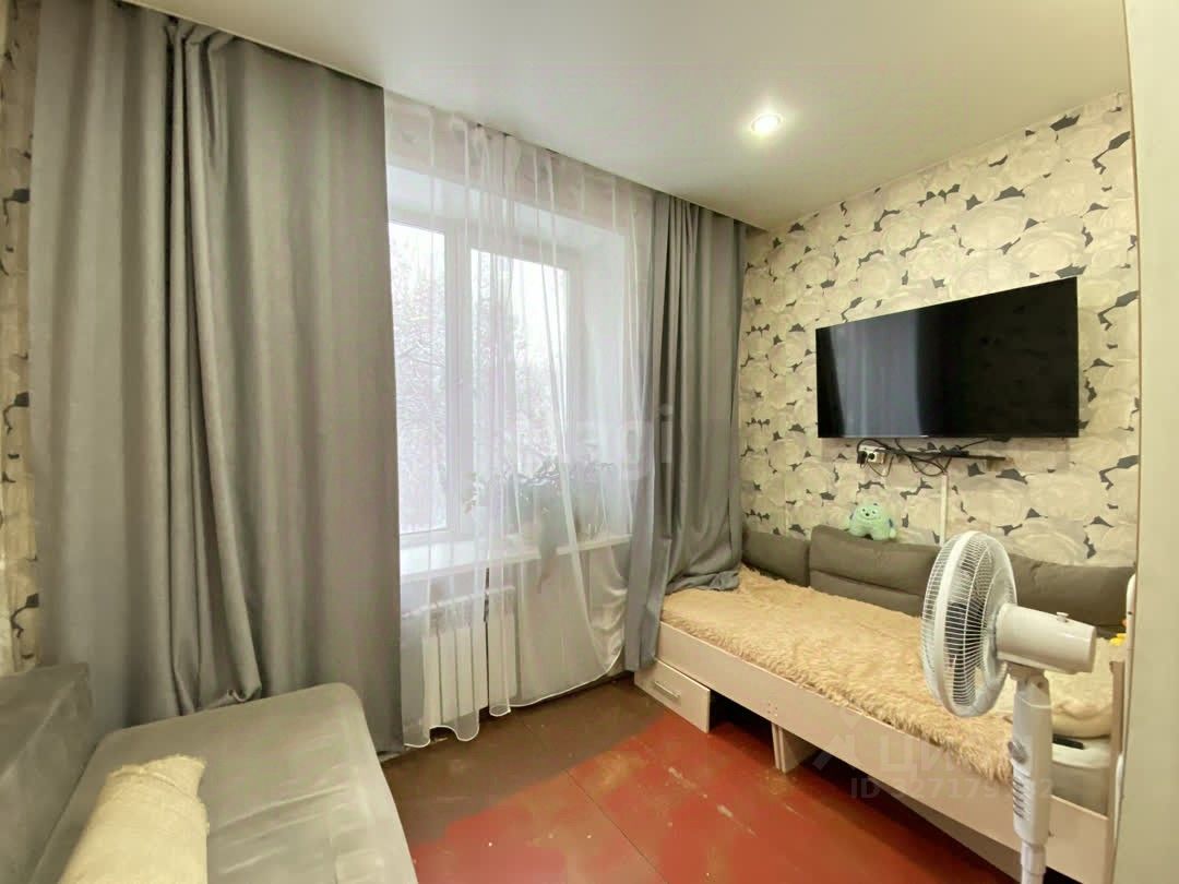 Состояние и планировка: большое пластиковое окно, вид во двор линолеум на полу, светлые обои натяжной потолок в квартиру заведены горячая и холодная вода свой санузел с унитазом и душевой (на этаже), есть возможность установить полноценный с/у остаётся плита, шкаф, софа