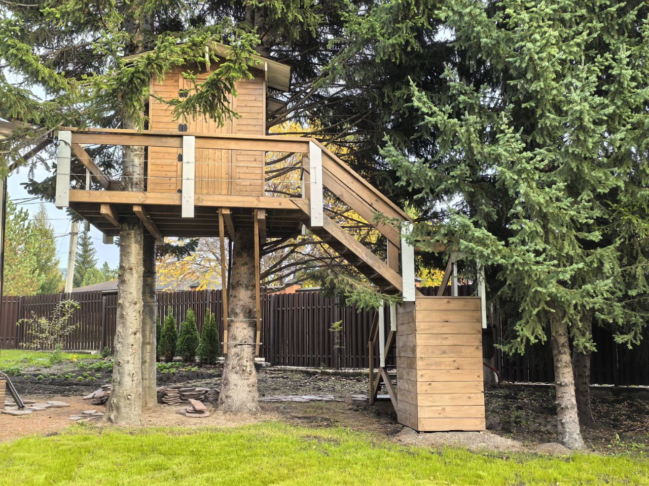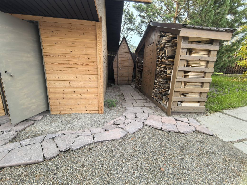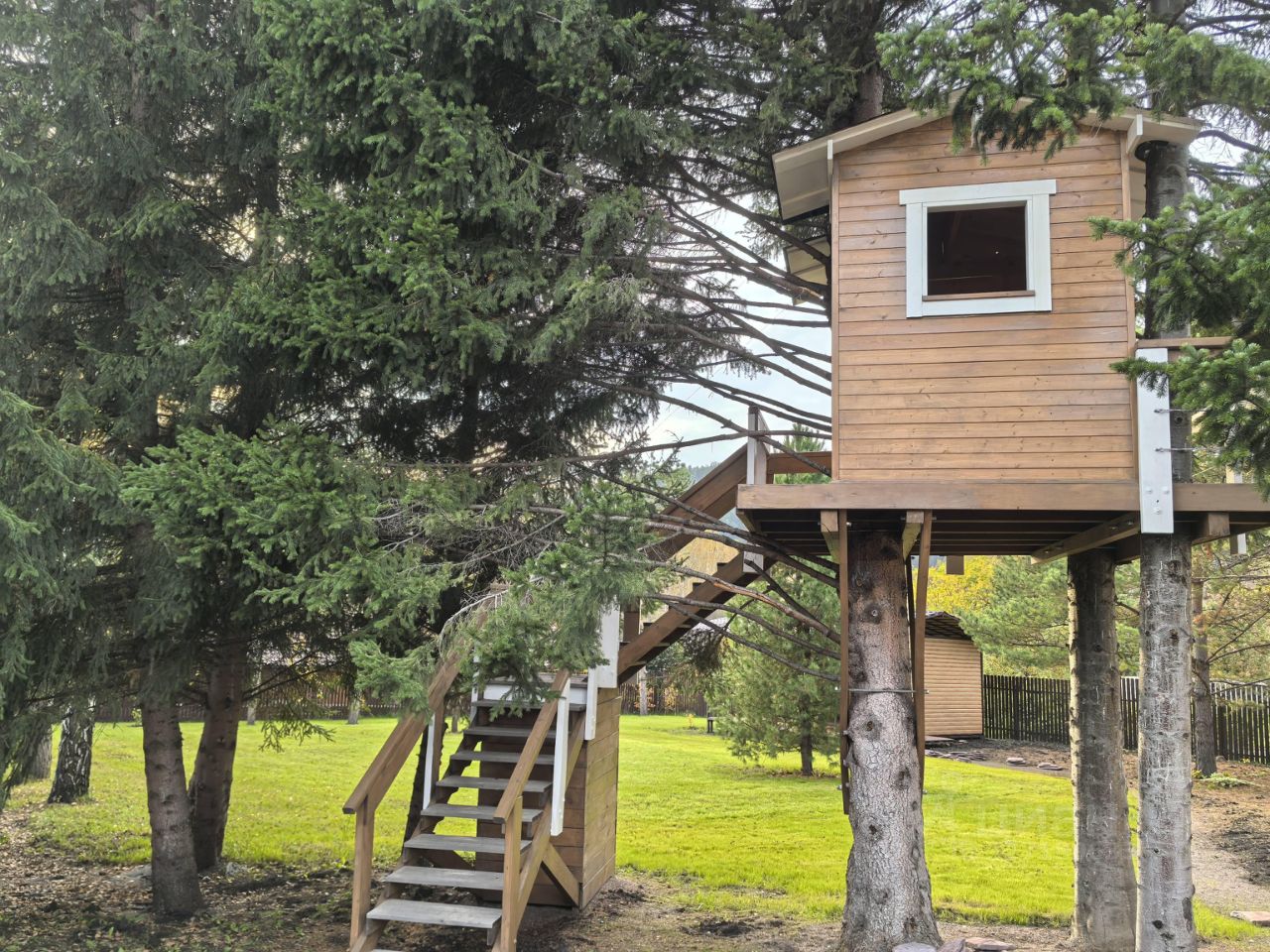 На участке: баня, дровеник с хоз.блоком. и детский домик на дереве., мангальная зона в беседке.своя скважина. Много хвойных деревьев, высажен газон, Фруктовые деревья и ягодные деревья.
