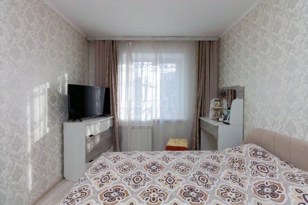 Планировка: Изолированная. Комнаты раздельные, что обеспечивает личное пространство для каждого члена семьи. Нет проходных зон. Состояние: Выполнен качественный косметический ремонт. Квартира полностью готова к проживанию, глобальных вложений не требует. Очень тёплая и светлая, создаёт атмосферу уюта и комфорта. Санузел: Совмещенный, полностью отделан качественным кафелем. Коммуникации: Все системы (отопление, водоснабжение) новые, можно не беспокоиться о замене труб в ближайшие годы. Двери: Установлены добротные деревянные межкомнатные двери.