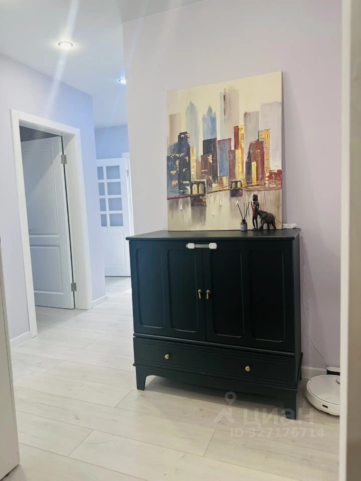 Отделка и наполнение: - Кухня: декоративная штукатурка/окраска, полы кафель, кухонный гарнитур с европейскими комплектующими, электроплита Hansa, вытяжка Hansa, посудомоечная машина Ariston 60 см, две точки вытяжной вентиляции, римские шторы. - Общая комната: обои Borastapeter (Швеция), ламинат, потолки окрашены. Остается широкий встроенный книжный шкаф из массива сосны, кондиционер. - Спальня: обои, ламинат, потолки окрашены. Выведены точки для подключения подсветки парящей кровати, шкафа, туалетного столика. - Коридор: входная зона декоративная штукатурка и полы керамогранит, жилая зона стены окрашены, полы ламинат. Потолки натяжные. Остается встроенный угловой шкаф, настенное зеркало, комплект мебели в прихожей. - Ванна: кафель, туалет: кафель+моющаяся окраска. Выведены трубы и розетки под бойлер и стиральную машину. Остается комплект мебели для ванной комнаты.