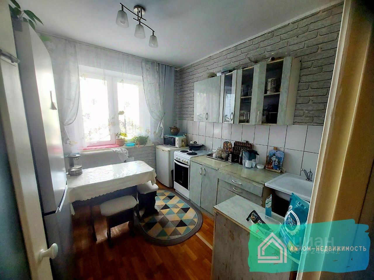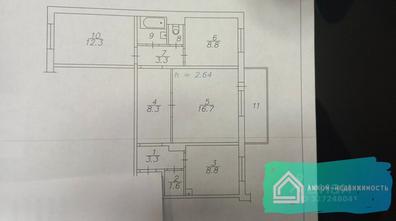 Продается 3-комнатная квартира. Общая площадь — 66,5 кв.м, кухня — 9 кв.м, ее можно увеличить до 12 кв.м. Квартира находится на 3 этаже 10-этажного панельного дома. Есть балкон. В квартире обычный ремонт, раздельный санузел и центральное отопление. Окна выходят во двор и на школу.