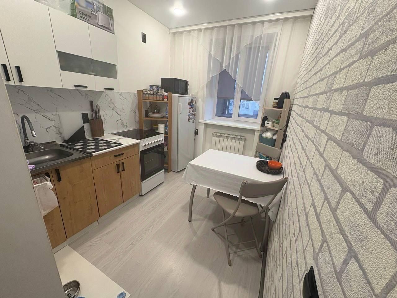 Ремонт закончили в 2025 году. Есть балкон длиной более 5ти метров, на котором установлены распашные окна покрытые зеркальной тонировкой (нет внутренней отделки) В квартире центральное отопление и холодное водоснабжение (все трубы новые), также есть два бойлера - один на 15 литров находится на кухне, второй на 100 литров - в душевой. Натяжной потолок, освещен точечными лампами по всей квартире. В зале есть люстра с разными режимами освещения. На полу ламинат, в ванной керамогранит. В душевой, а именно в инсталляции скрытые люки под бойлер и водные коммуникации. Подвесной унитаз, удобный тропический душ. Электрический теплый пол в душевой и во входной группе. Предусмотрено много розеток. Есть кондиционер. Также в придачу участок земли и небольшой сарай. Вся мебель и некоторая техника остается в доме: кухонный гарнитур, обеденный стол, холодильник, чайник прихожка, мягкий пуф диван, столик, телевизорная тумба 2х спальная кровать, ортопедический матрац, навесные тумбы, шкаф, полка с секциями, навесная полка комод, шкаф, кровать, тумба зеркало, стиральная машина.
