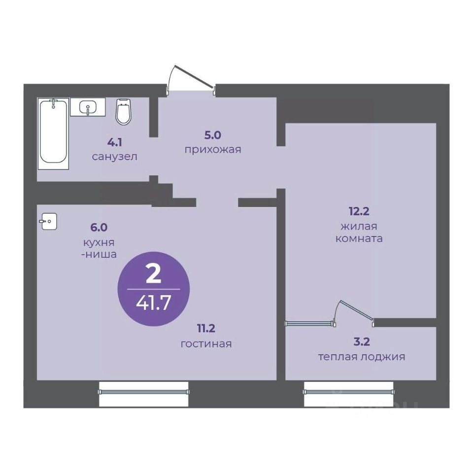 Общая площадь41,7 м2