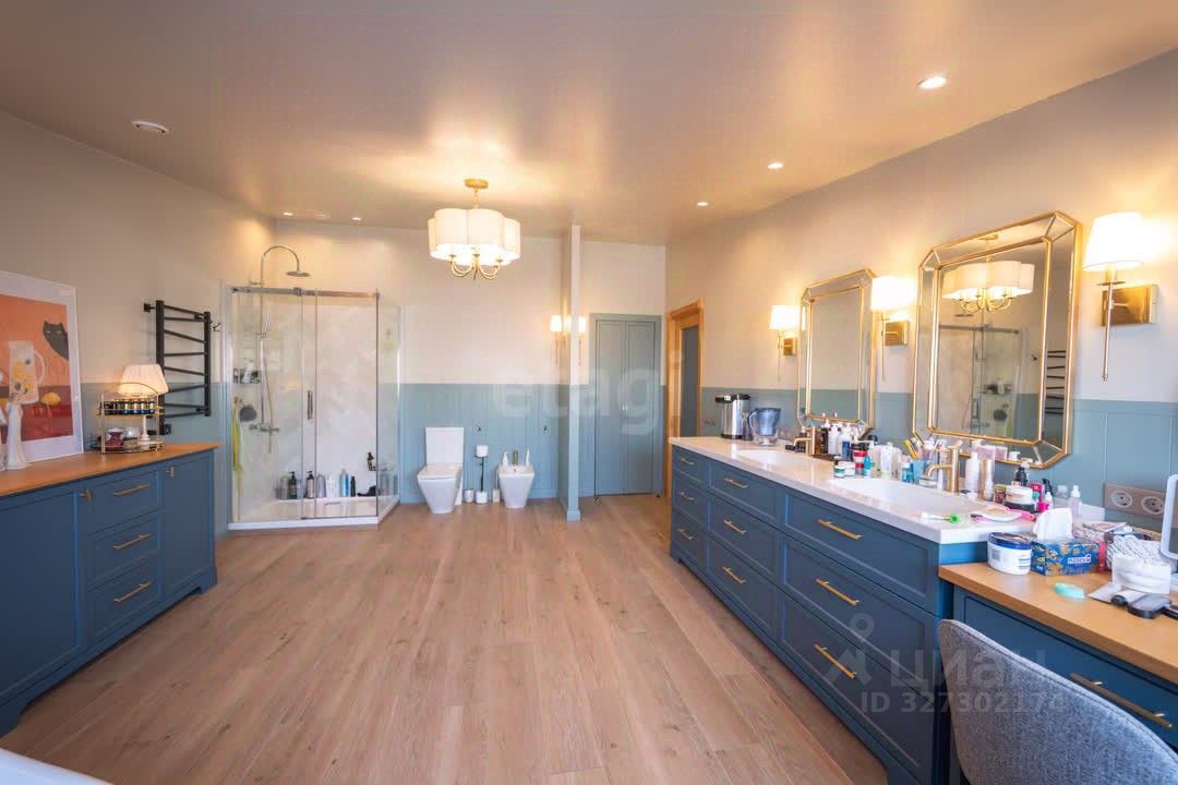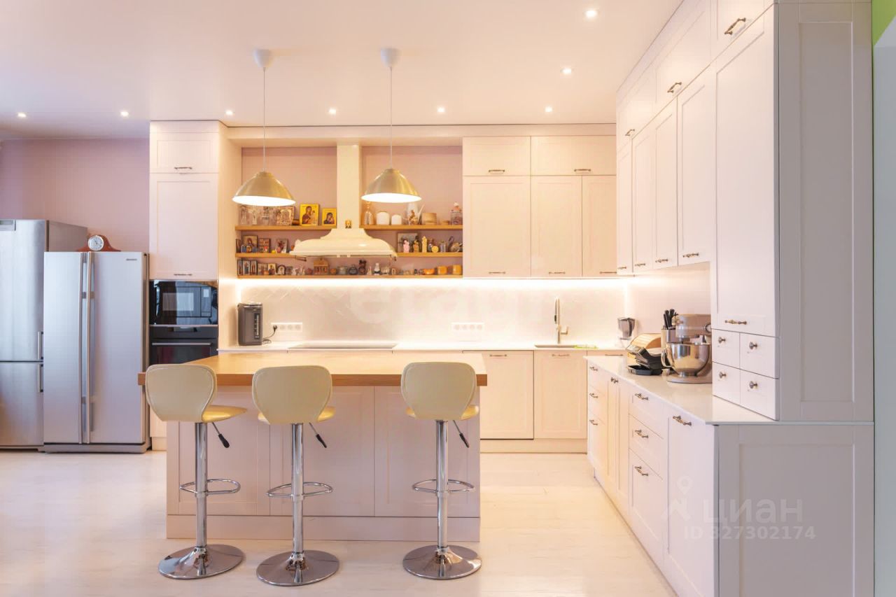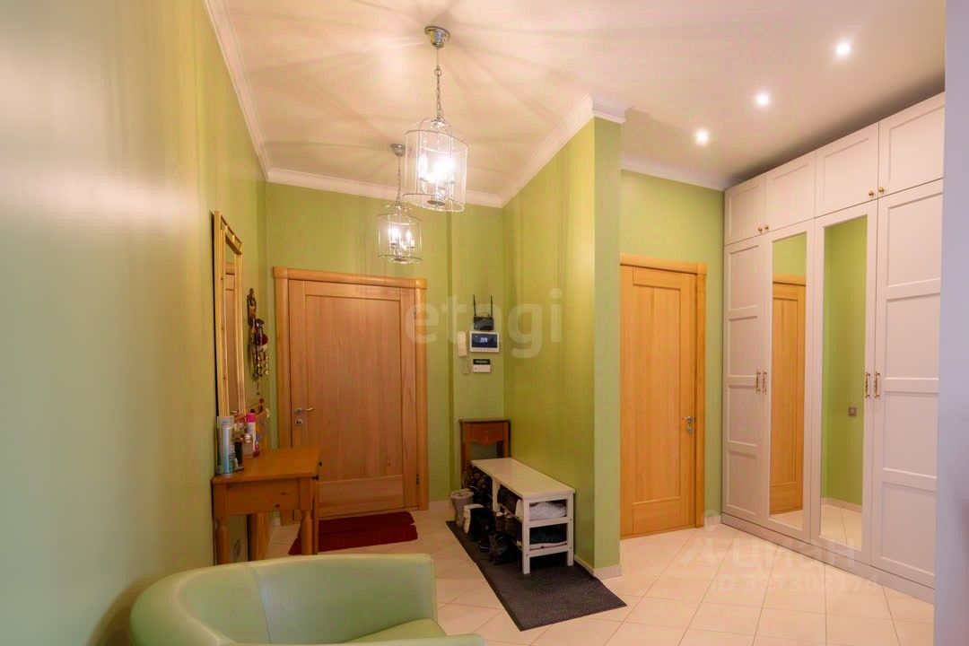 В помещении установлены кондиционеры во всех комнатах, а также предусмотрены три гардеробные зоны для организации хранения. Кухня полностью укомплектована встроенной бытовой техникой, включая холодильник и посудомоечную машину.