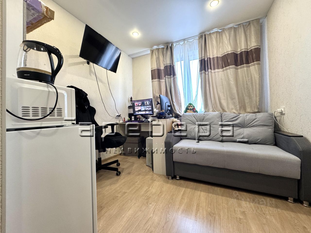 Комната небольшая, но обустроенная для жизни одного человека, либо пары.